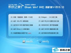 系统之家 Win7 64位旗舰版系统[最优装机版]ISO镜像 V2019.10iso镜像包通过正版认证,支持在线升级,集成了数百种常见硬件驱动,经过技术员精心测试,几乎所有驱动能自动识别并安装好,系统在完全断网的情况下制作.....