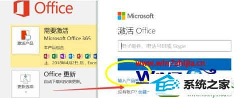5、如果你的Excel没有激活的话可以点击激活产品进入到登陆账户的页面,因为登陆账号系统会检测你有没有购买过Excel的产品;