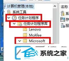 第四步:按下图所示依次打开【任务计划程序库】-【Microsoft】-【win】。