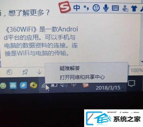 第四步:搜索不到wifi,连接不可用,如果显示的是正常的无线网络图标,只是不能连接,可以右击无线图标,打开和网络分享中心。