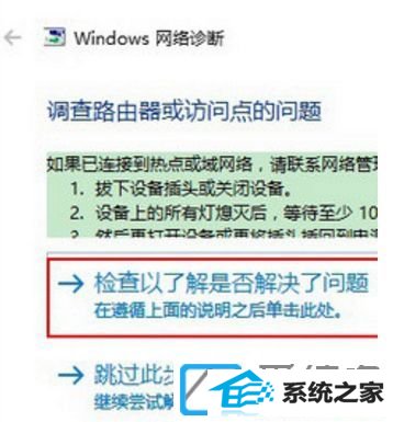 第八步:一般很快会诊断出电脑网络的问题,之后,可以点击 “检查以知道是否处理该问题”测试系统进行自动修复。