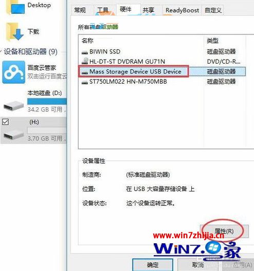 2、点硬件,然后快速双击你的盘符或者点属性;