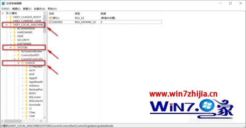 2、然后依次展开并定位到HKEY_LoCAL_MACHinE\sYsTEM\CurrentControlset\Control;