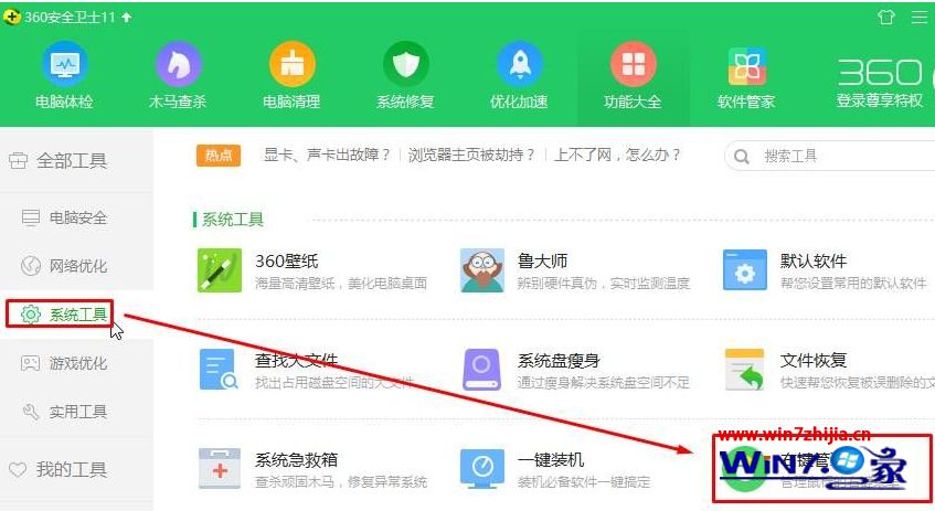 1、打开360安全卫士,点击”功能大全“;