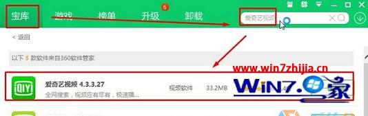 3、卸载完成后,点击“宝库”按钮,然后在搜索框中搜索“爱奇艺”,在下面找到“爱奇艺视频”,点击【一键安装】即可;