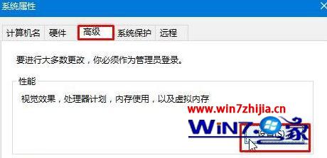 3、点击“高级”选项卡,点击“性能”后面的“设置”按钮;