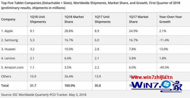 今年一季度,平板电脑市场的销售数据并不乐观,idC指出,平板电脑出货量较去年下降11.7%,但可拆卸设备的市场份额超过15%,销售额增长近3%。