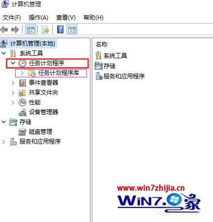 2、依次从左侧点击,“系统工具”--“任务计划程序”---“任务计划程序库”;